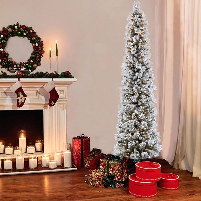 National Tree Company 7 1 2 Foot Pre Lit Glittery Bristle Pine Slim Christmas Tree Bed Bath Beyond